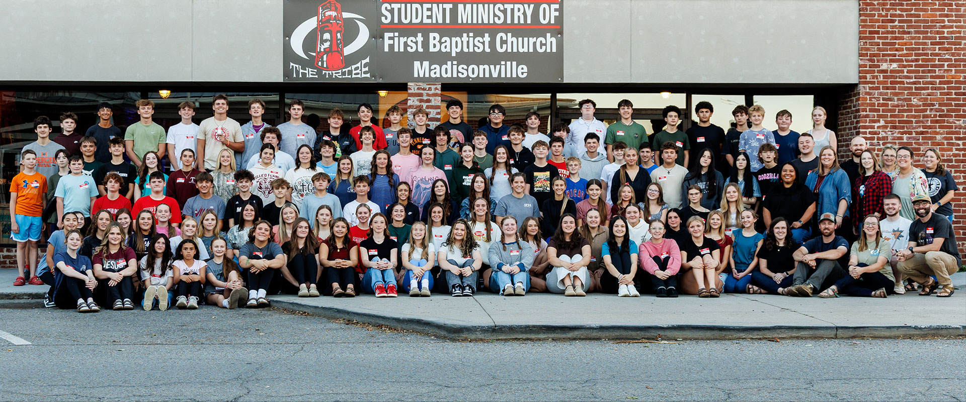 The Tribe is the student ministry at FBC Madisonville. We serve students in 7th through 12th grade and provide a place where students can experience an exciting time of worship, learning, and growth in Christ together. The purpose of The Tribe is to motivate students to become devoted and passionate followers of Jesus. If you have any further question please feel free to contact Logan Blackwell at logan@fbcmadisonville.org.